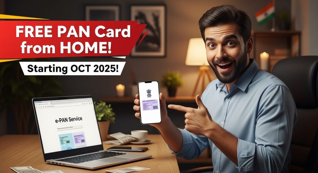 अक्टूबर 2025 से घर बैठे बनवाएं PAN कार्ड: मैं आपको एक अच्छी खबर देना चाहता हूं! अक्टूबर 2025 से आप अपने घर बैठे ही मुफ्त में PAN कार्ड बनवा सकेंगे। जी हां, अब मिलेगी फ्री ई-पैन सर्विस जिससे आपको न तो कहीं जाना होगा और न ही कोई शुल्क देना होगा। क्या आप भी PAN कार्ड बनवाने के लिए लंबी कतारों में खड़े होने से परेशान हैं?