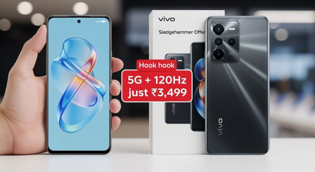 Vivo 5G स्मार्टफोन ऑफर: मैं आज आपके लिए एक शानदार खबर लेकर आया हूँ! Vivo ने अपना नया स्लेजहैमर ऑफर लॉन्च किया है जिसमें 5G स्मार्टफोन और 120Hz डिस्प्ले वाला फोन सिर्फ ₹3,499 में मिल रहा है। और यह नहीं, इसके साथ एक साल का Netflix सब्सक्रिप्शन भी बिल्कुल मुफ्त! क्या आपने कभी सोचा था कि इतने कम दाम में इतना कुछ मिल सकता है?